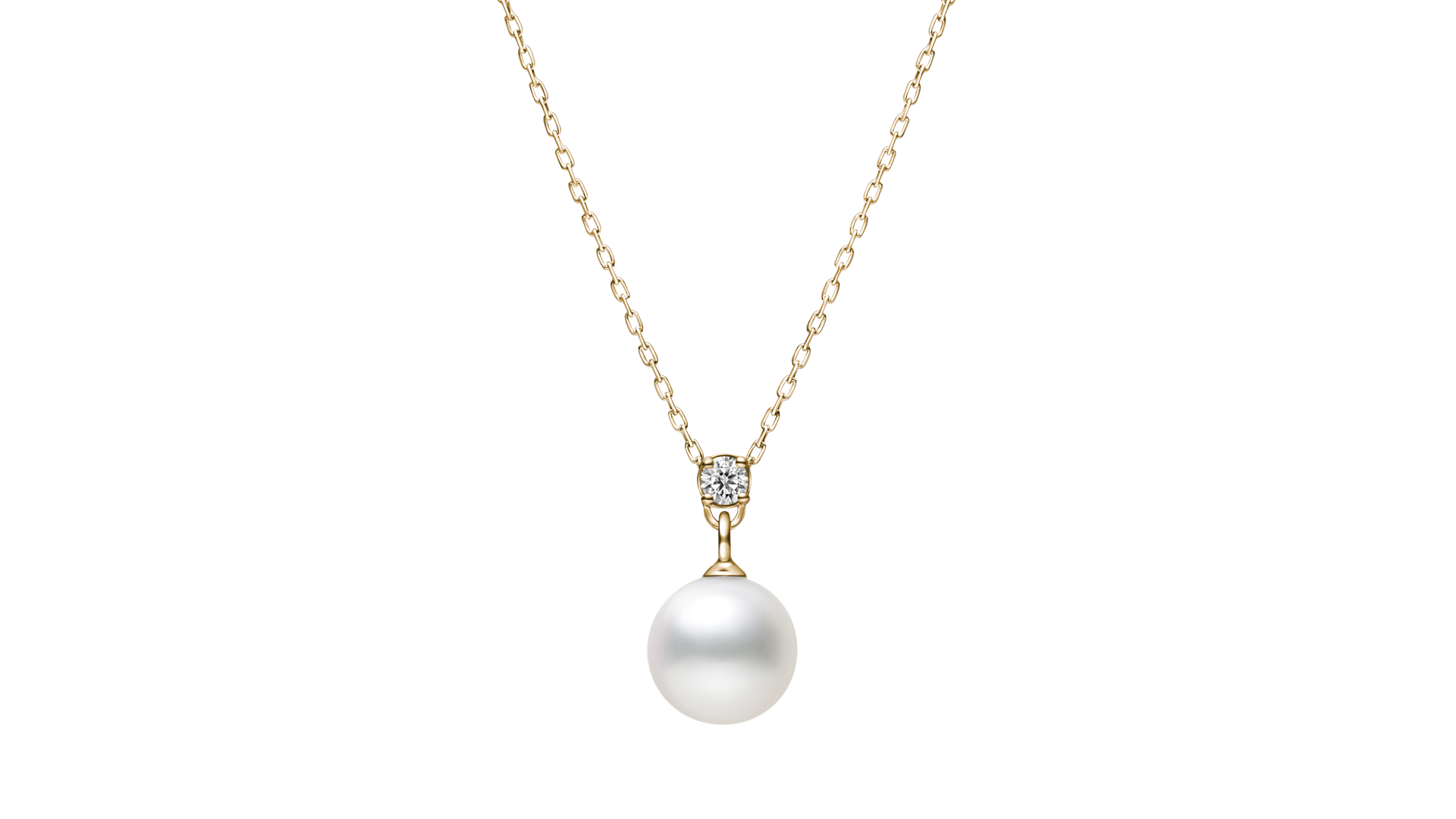 天然の白色と美しい丸みを帯びたパールに、メレダイヤモンドの煌めきがやさしく降り注ぐデザイン。 やわらかな月の光を思わせるほんのりと上品な輝きが、大切な記念日の想いにやさしく寄り添います。 洗練されたシンプルな装いで幅広いシーンで活躍するネックレスです。