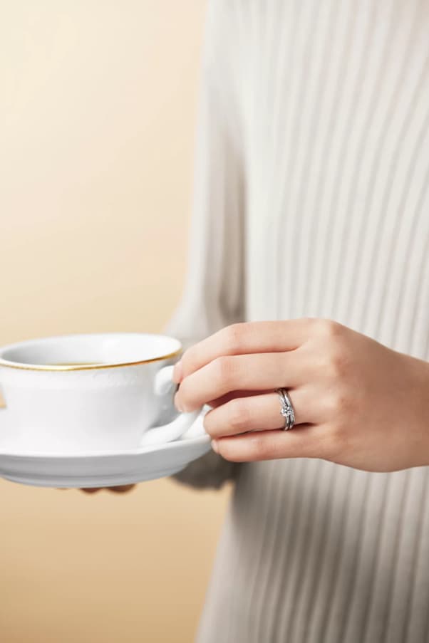 セットリングとして婚約指輪と結婚指輪が一体でデザインされたものを選ぶのもひとつの方法で、統一感のある手元を演出しやすくなります。重ね着けのバランスや装着感も考慮して、普段使いしやすい組み合わせを選びましょう。