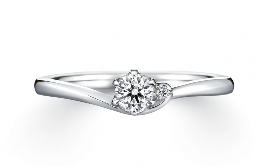 リング内側には“かくれ桜”が忍ばされ、軽やかな装着感も魅力。飛び出しが少ない引っ掛かりのない設計で、日常でも安心して身に着けられる婚約指輪です。Kitalpha(キタルファ)