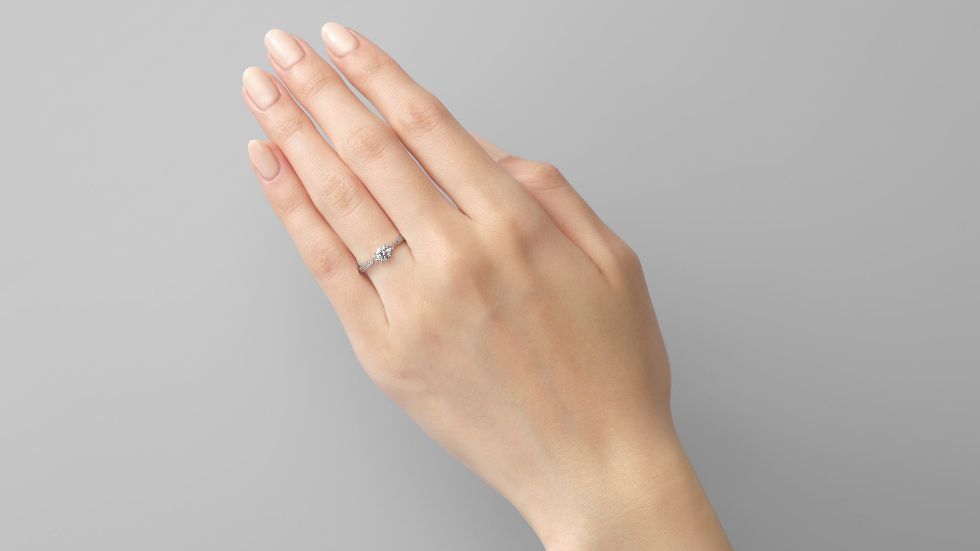 繊細なミルグレインとダイヤモンドのセットを上品な輝きで装って