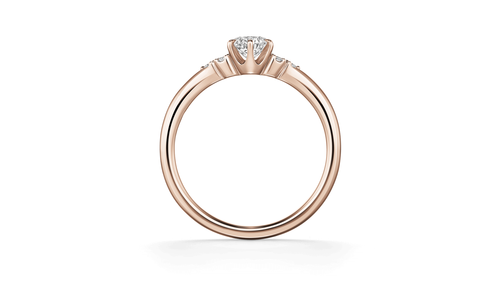 はっと目を引く、エレガントなV字ライン。プレアデス星団の七姉妹の女神の名を持つ、祝福に満ちたエンゲージリングです。女神たちが手を取りあい、衣をたなびかせて舞う姿をイメージした華やかなデザイン。絶妙な角度のエッジラインは、ひるがえったドレスのよう。細身のアームとV字には指を長く見せる効果もあります。見て美しい、着けるともっと美しい。女神のリングが、おふたりの運命を永遠に結びつけます。