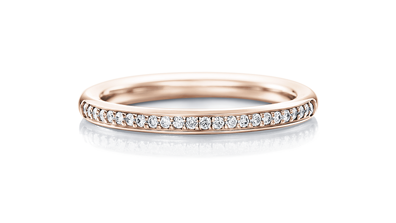 24粒もの厳選されたメレダイヤを、細身のリングに。輝きのラインが、指をさりげない華やかさで彩ります。
