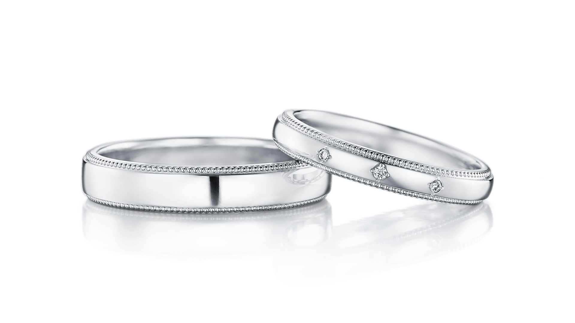 おふたりで歩んでゆく人生に、豊かな恵みが降り注ぎますように。そんな願いが込められた、太陽と雨を司る豊穣の女神の名を持つ鍛造のマリッジリングです。粒ぞろいのミルグレインが途切れることなく施された、クラシカルな雰囲気が漂うデザイン。肌の一部のようになじむ、安定感のある着け心地。絶妙な間隔でメレダイヤモンドを散りばめたシンプルな3石と、きらびやかなハーフエタニティタイプの20石からお選びいただけます。