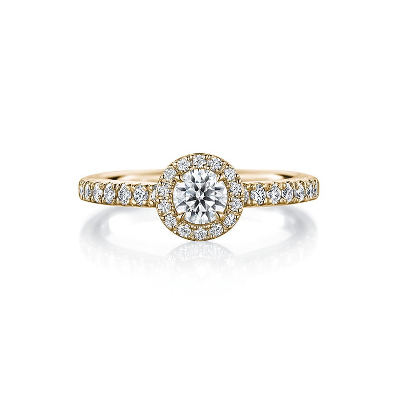 永遠の愛を誓うのにふさわしい、目に入るすべてが輝きに満ちたエンゲージリングです。センターダイヤモンドをぐるりと囲むように14石のメレダイヤモンドを敷き詰め、贅沢にハーフエタニティのアームと組み合わせました。「フォーマルハウト」は、王様の運命を占う星として大切にされてきたロイヤルスター。きらびやかでありながらもアンティークのように手になじむ、本物だけに許される荘厳な輝き。これから運命をともにする人の薬指に。