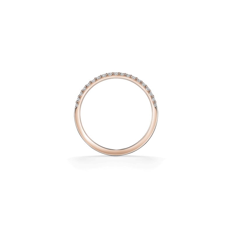 「天使の輪」を意味する名をもつ、メレダイヤモンドの繊細な輝きが際立つハーフエタニティリング。細身ながら日常使いに適した強度を備えており、 重ね着けを楽しみやすい、シンプルで万能なデザイン性も魅力です。
