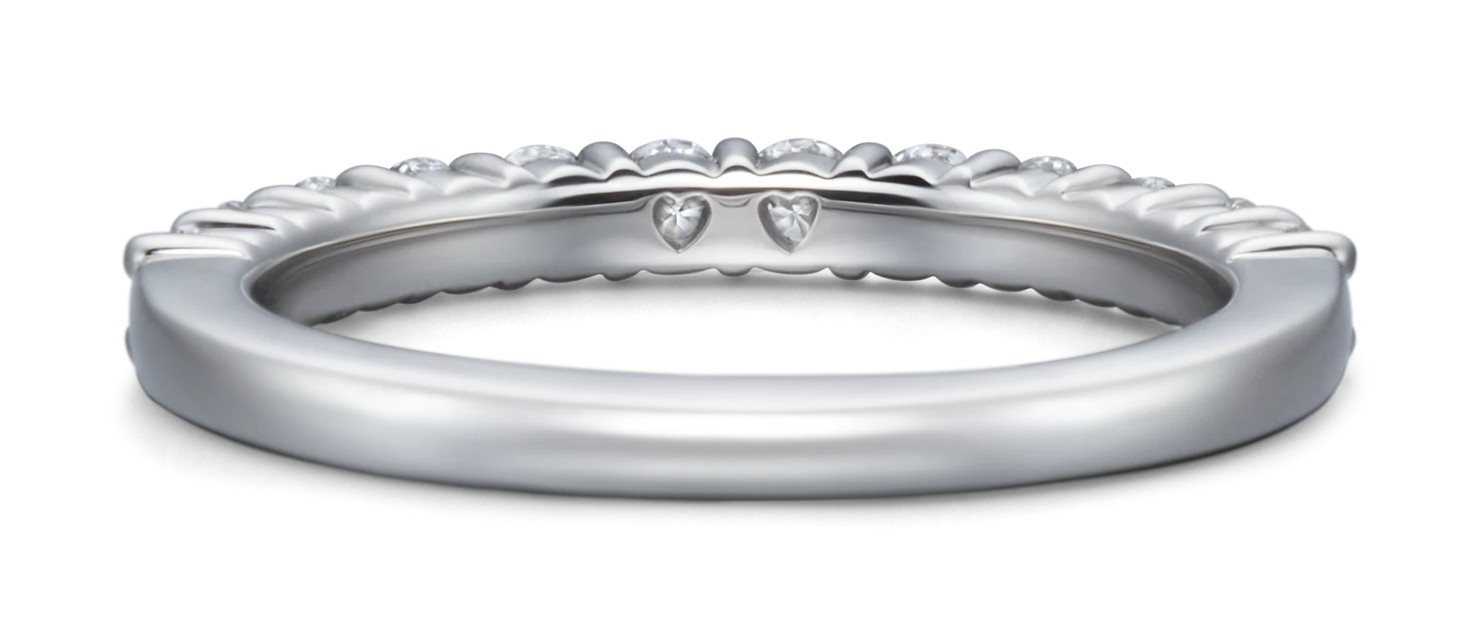 一見シンプルなデザインですが、実はリングの裏側をご覧いただくと寄り添う2つのハートの透かしがあらわれる特別なリングです💍