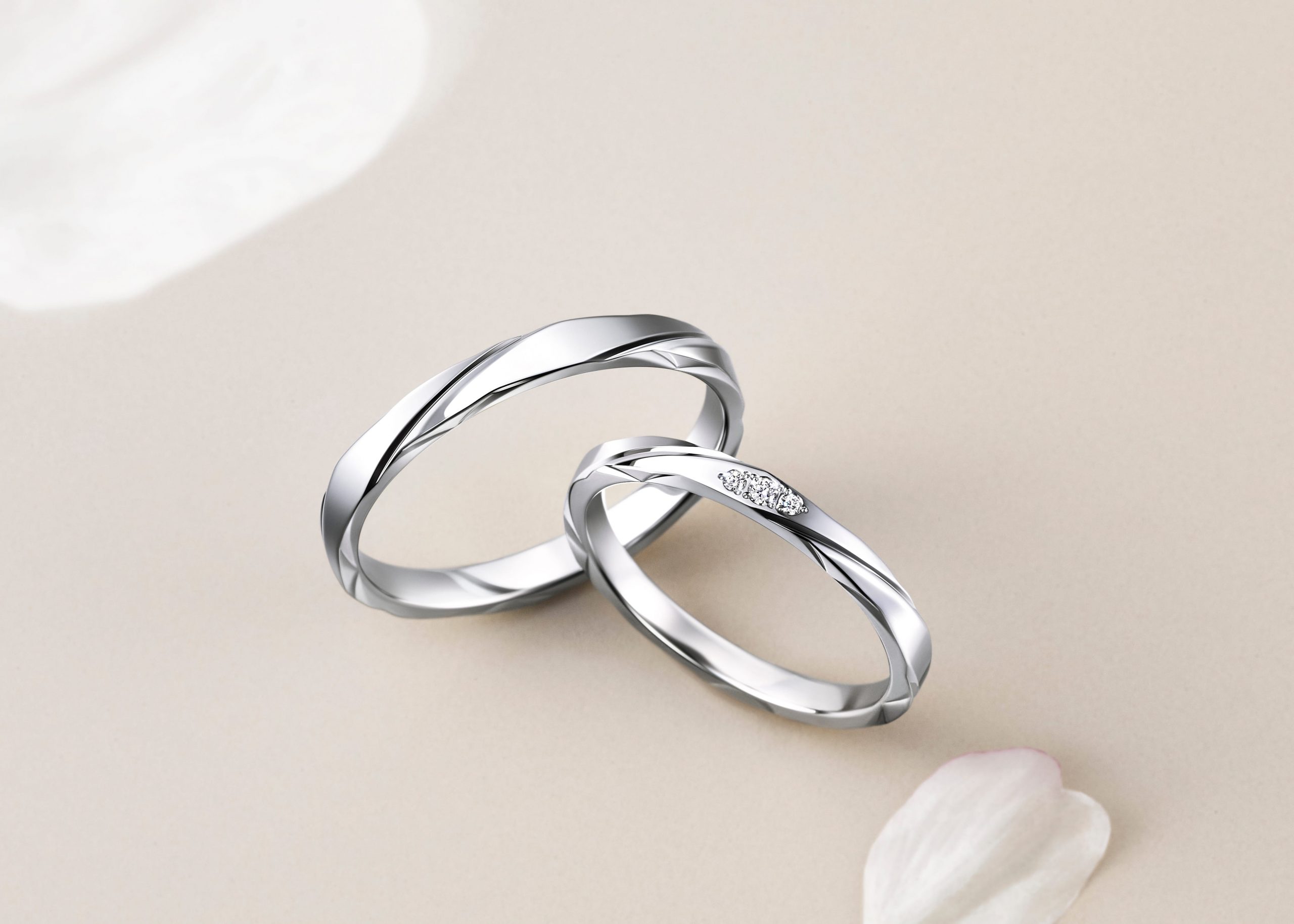 有料オプションとしておふたりのリングを重ねるとメレダイヤモンドの桜が完成する