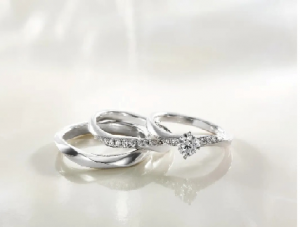 ひねりのデザインが美しい結婚指輪の『アルチェステ』のセットリングなので、合わせてお着け頂くと仲睦まじいご夫婦のようにしなやかなウェーブのライン同氏が寄り添い、流れるようなダイヤ繊細な輝きがシンクロします。