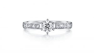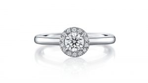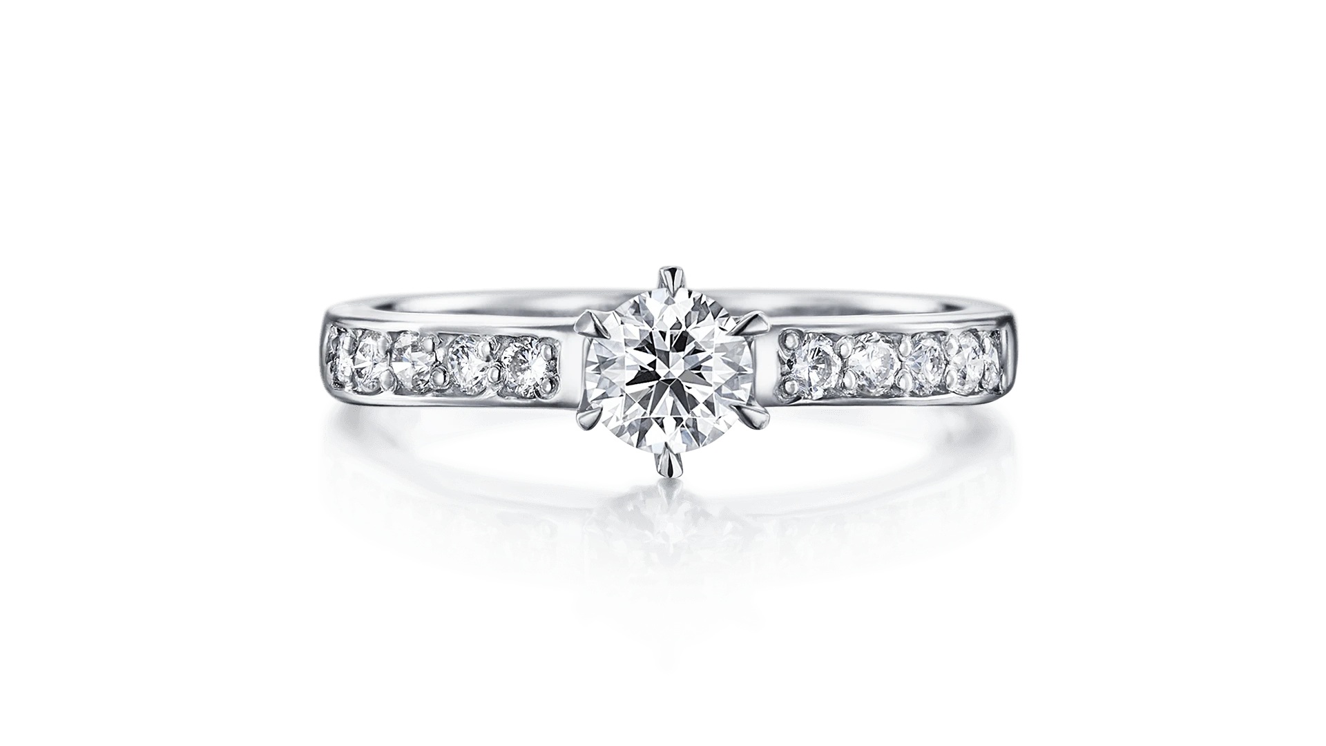 センターダイヤモンドを取り巻くメレダイヤモンドは目を引く輝きを放ち特別感溢れるデザインです。