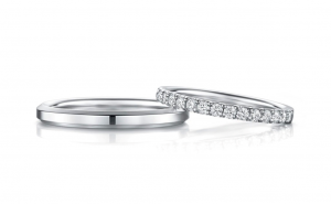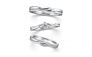 エンゲージリングもマリッジリングもストレートラインをベースにしながらも、動きを感じさせる立体的なデザインです。