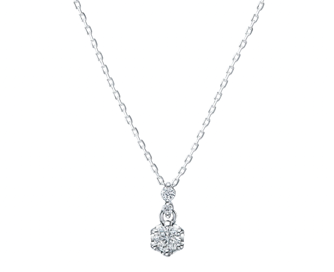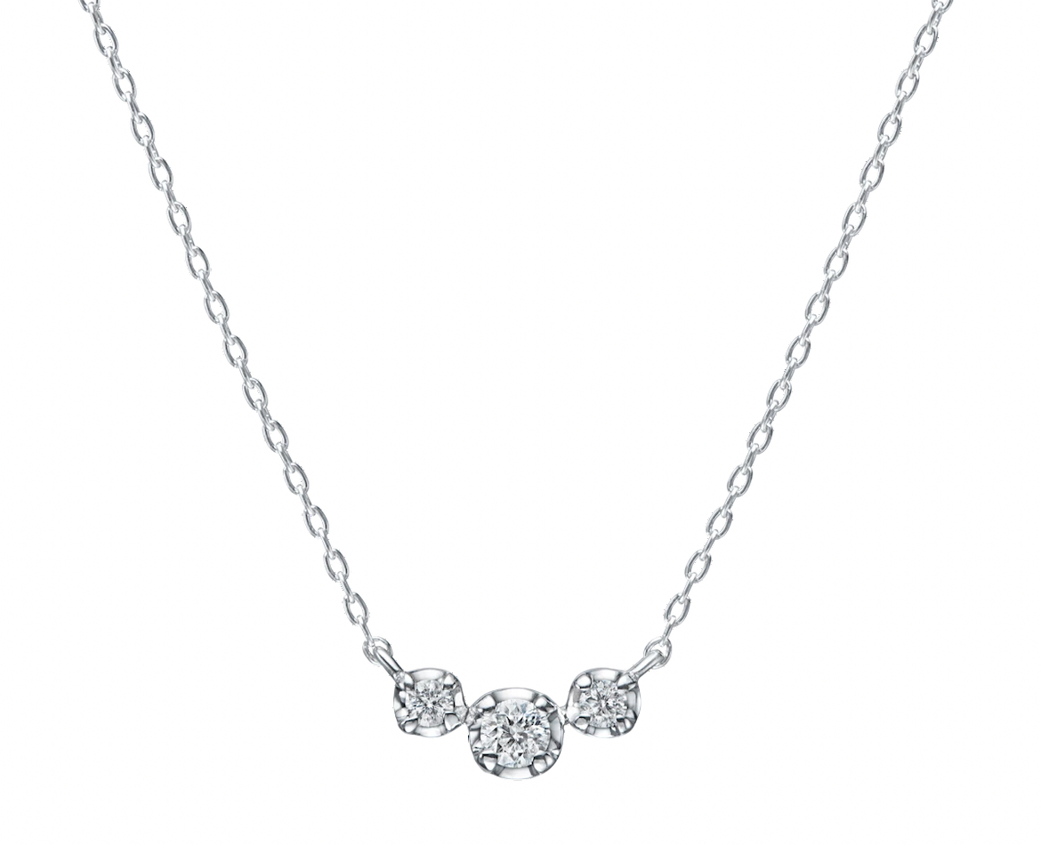 3石のダイヤモンドが胸元で可愛らしく輝くデザインです。