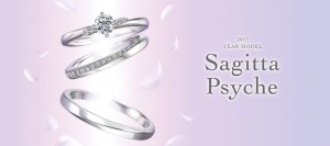 サジッタとプシュケーはギリシャ神話で夫婦となった「クピドとプシュケー」の「愛の矢の軌跡」を表現しており、ストレートライン同士が綺麗に寄り添って重なるように造られたセットリングです。