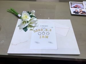 お2人のご入籍日に合わせた記念日ルースをセッティングしました。