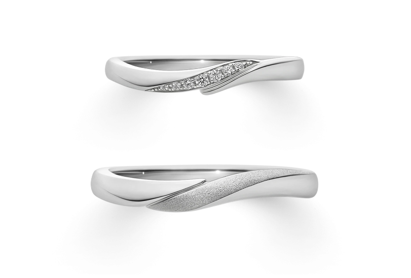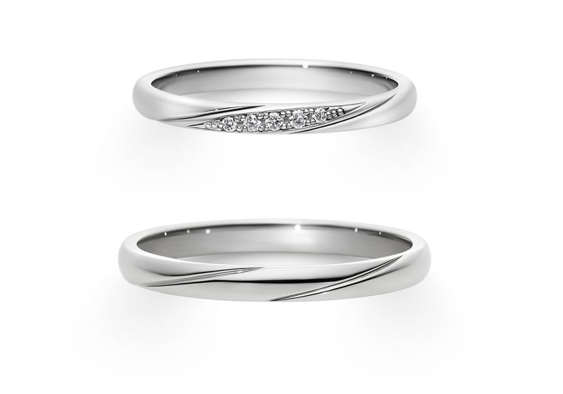 ひねりを加えてセッティングされたメレダイヤモンドが全方向から輝きを放ちます。
