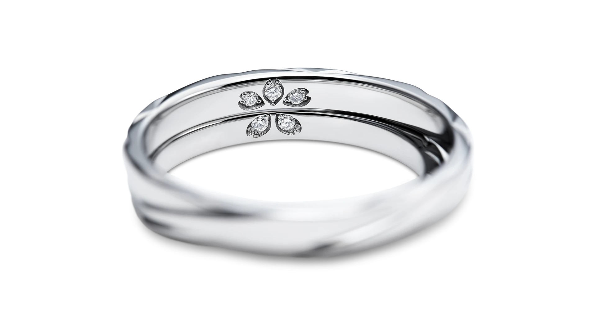 リングの内側、精巧な花びらの中にメレダイヤモンドを留めることで、5弁の桜が現れます。