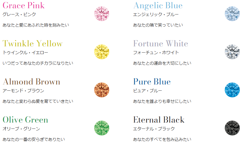 全8種類の色には、それぞれ意味が込められておりますので、お互いに選びあってみてはいかがでしょうか。