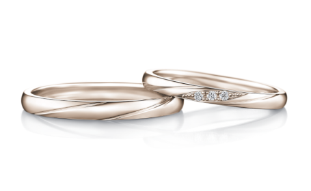 また、ナチュラルな色味は、指に溶け込むようにしっくりとなじみます。やわらかで淡い色味のためダイヤモンドが素材の色を拾いにくく、澄んだ輝きをより一層引き立て、着ける人を選ばないニュアンスカラーが、未来を誓うおふたりの想いをやさしく照らし出し、あたたかな輝きで指もとを彩ります。