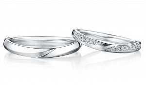 夜空で永遠の愛を手に入れた、月の女神「アルテミシア」。三日月のラインが印象的な、しなやかさとシャープさをあわせ持つマリッジリングです。アシンメトリーに埋め込まれたメレダイヤモンドが三日月のラインを浮かび上がらせ、2つのリングが揃うと、たなびく雲の隙間から三日月の光が差し込む美しい情景が広がります。