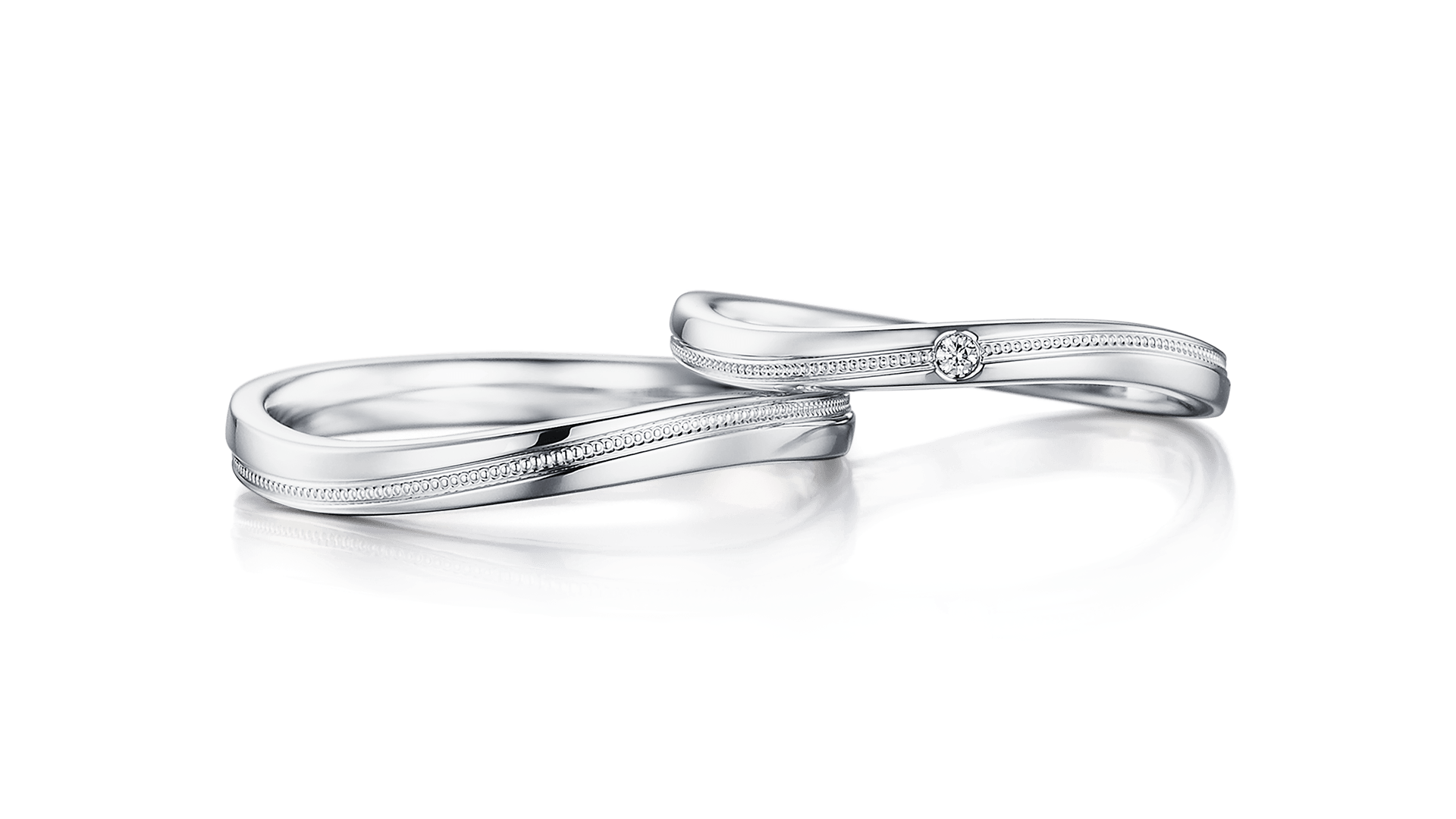 押し寄せる波をイメージしたウェーブラインに、極小のミルグレインを途切れることなく施し、一粒のダイヤモンドがキラリ。