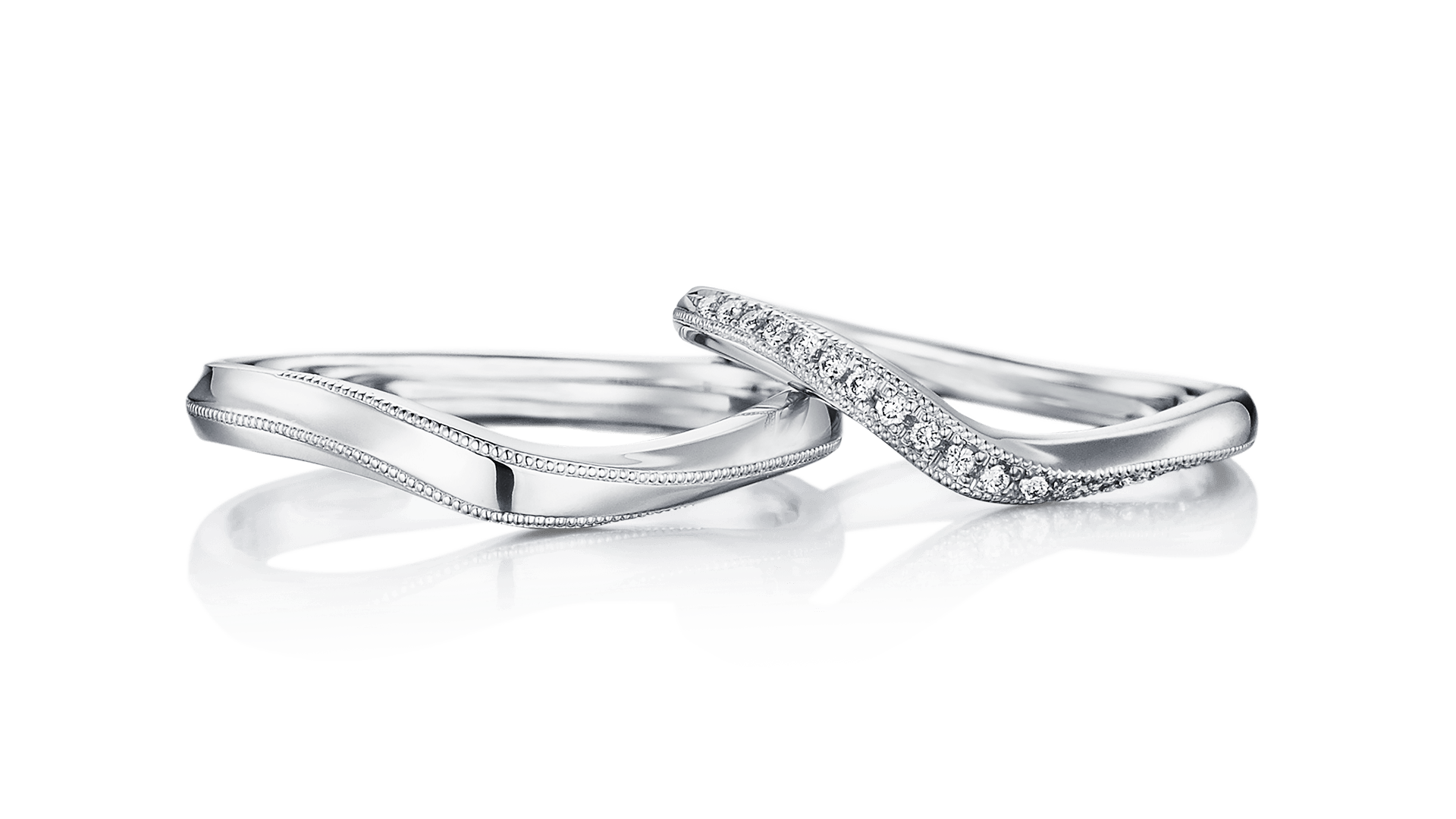 リボンのように波打つ独特のフォルムと、そのカーブに沿って施された繊細なミルグレイン。