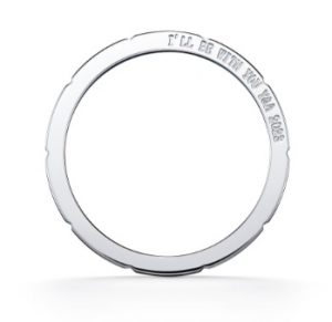 着けながら読めるメッセージ刻印と幸運のクローバーがサイド面を彩り、お好みの宝石を10個までセレクトアレンジが可能なデザインの為おふたりの出会いと軌跡を表現するラブレターのような結婚指輪です。