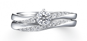 自然に寄り添う絶妙なカーブと、流れるようにシンクロする輝きのラインが美しく、重ねて着けることで輝きを増すセットリングです。